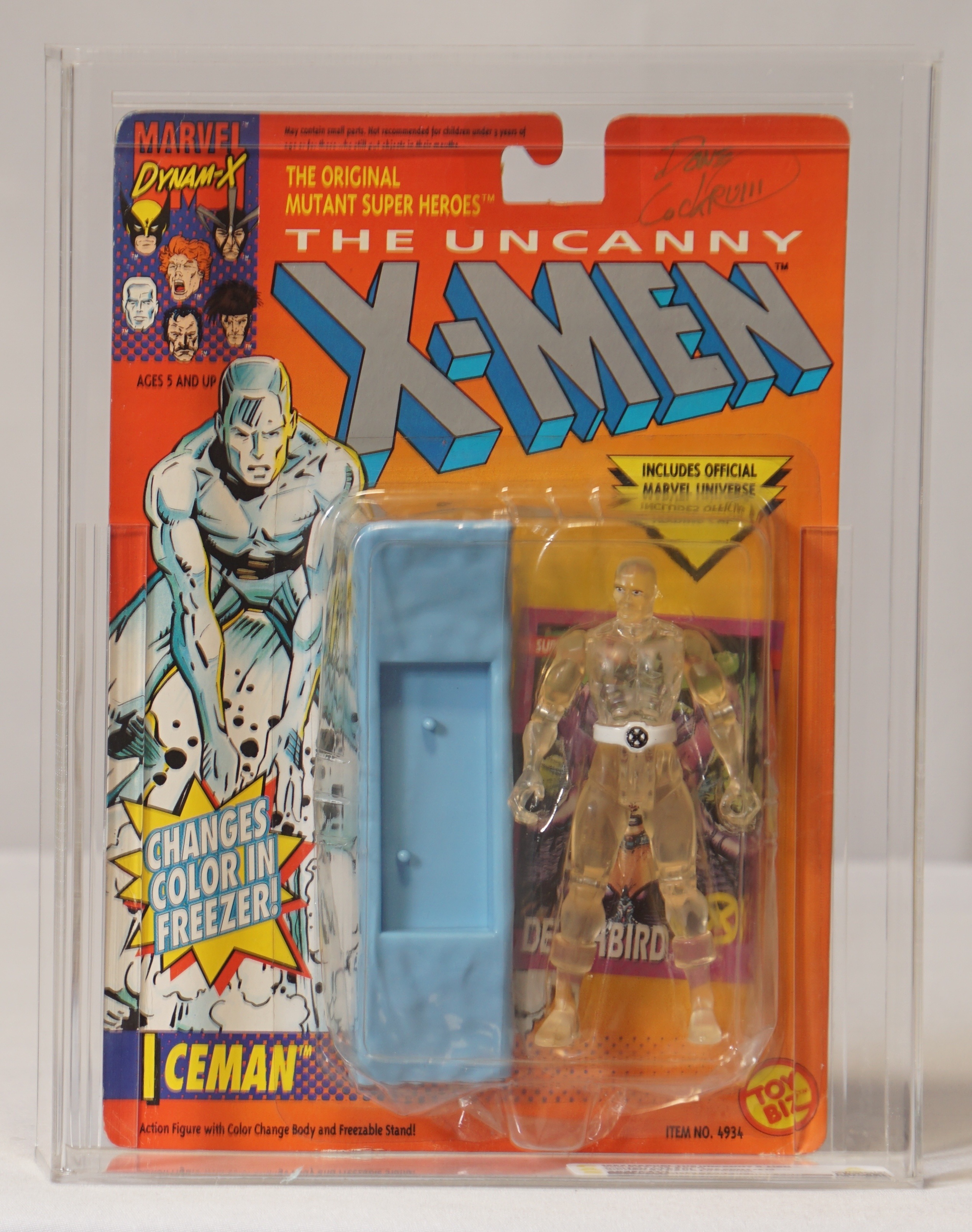 1992 Marvel Dynam-X The Uncanny X-Men Carded Action Figure - Iceman (Clear) (Signed by Dave Lockrum)