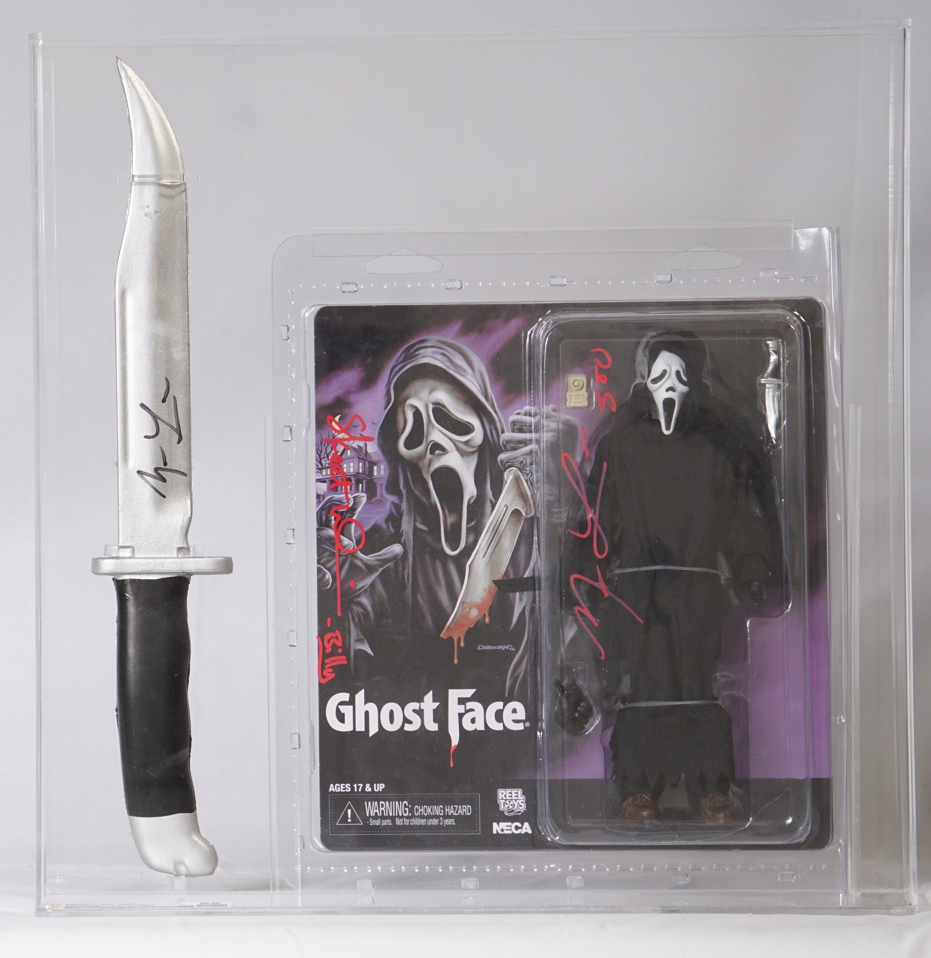 2014 Neca Reel Toys Carded Action Figure - Ghost Face (Displayed with Knife) Signed by Matthew Lillard & Skeet Ulrich