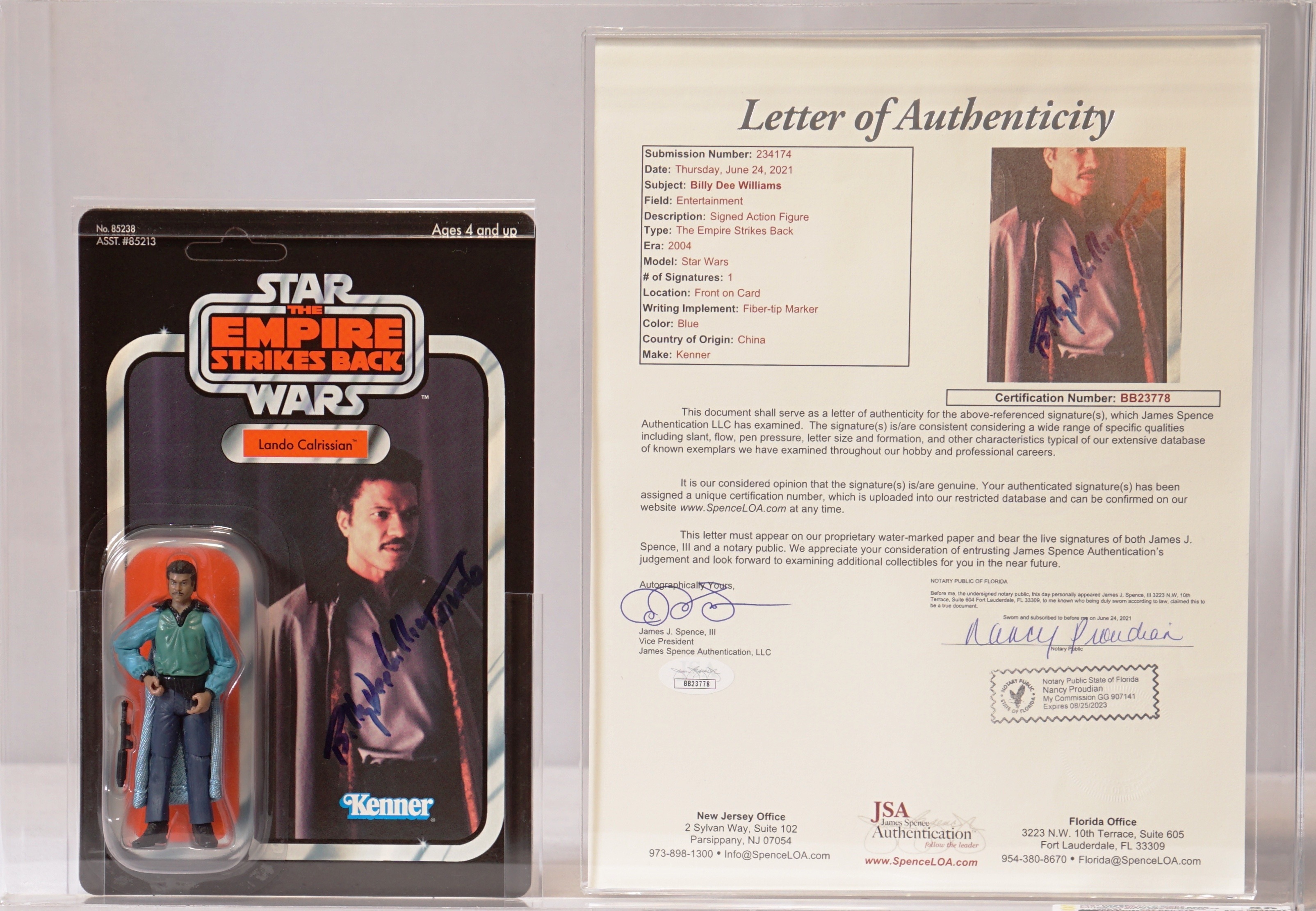 2004 Hasbro Star Wars Trilogy Collection Carded Action Figure - Lando Calrissian (Signed by Billy Dee Williams) Displayed with JSA Cert