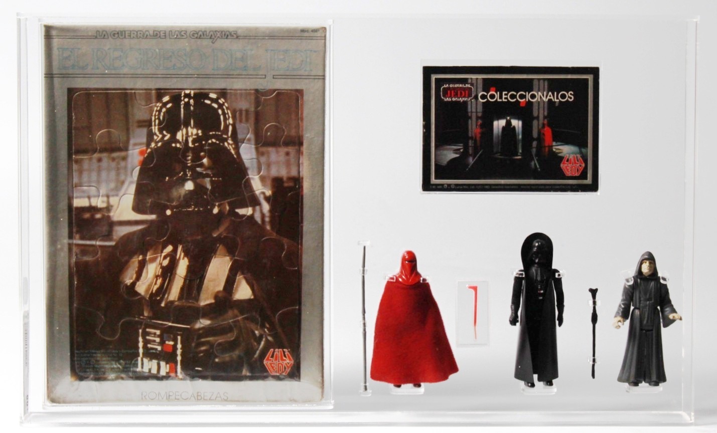 CUSTOM 1977-83 Lili Ledy Star Wars 3pc Loose Action Figure Display - ERG, Vader, Emperor (Displayed with Puzzle & Booklet)